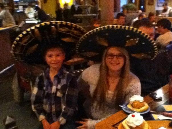 I am disappointed to say that I did not take a single picture this weekend, even though I had my sister and her boyfriend in town and had all these parties lol. But my sister did get a good shot of her and Kalvin in the sombreros from her Cinco de Mayo birthday dinner at Dos Machos. Its quite the hoot! :)